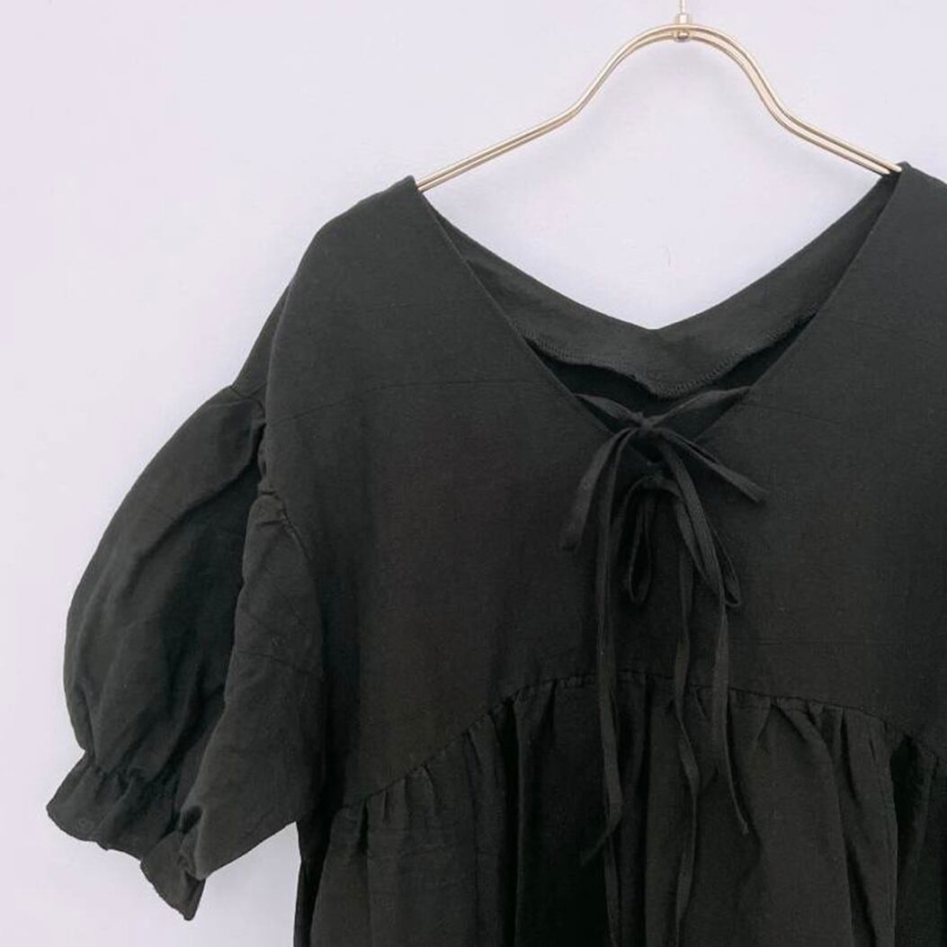 frankygrow DOUBLE RIBBON V-DRESS DYED/BLACK