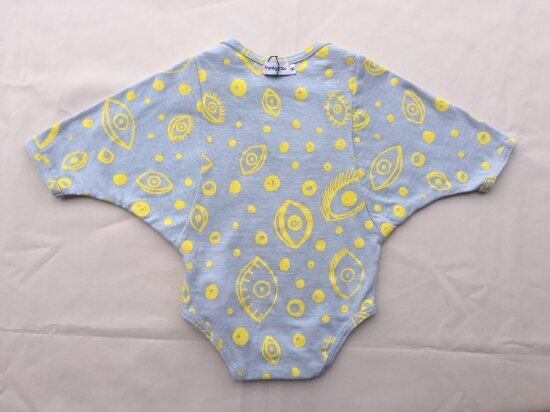 ドルマンスリーブと胸元のリボンがとってもかわいいロンパース♪